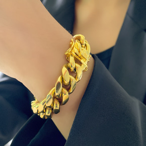 欧美跨境热卖钛钢粗链古巴链嘻哈手链龙头扣不锈钢街头...