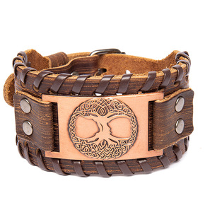 跨境热卖外贸多层手工编织皮手链男士欧美饰品皮绳磁吸...