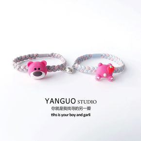 原创爱心磁吸情侣手链女款可爱卡通闺蜜送男朋友小皮筋...