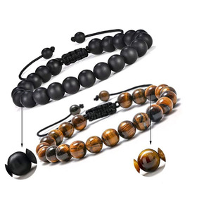 欧美跨境热卖天然虎眼玛瑙石手链男编织可调节黑磁石瑜...