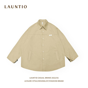 龙之男装2022春季衬衣薄外套 日系简约口袋抽绳设...