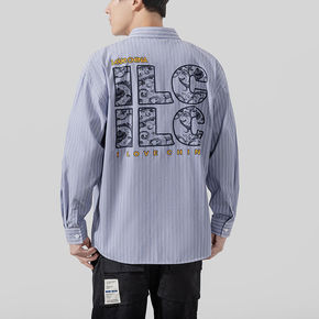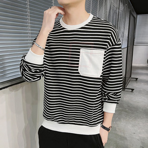 长袖衬衫男条纹春秋外套学生衬衣潮流男装青少年港风男...