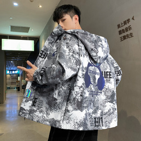 珀斯人工装外套男士连帽衫日系潮牌字母印花夹克春季宽...