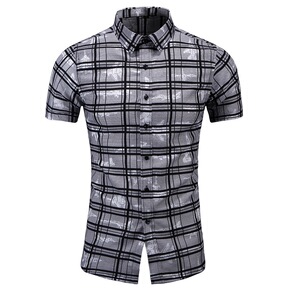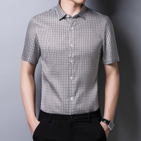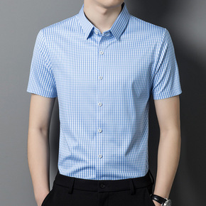 夏季压胶无痕短袖男式衬衫商务休闲宽松格子气质衬衣薄...