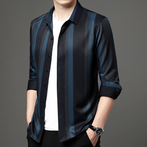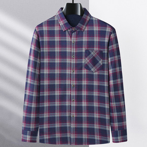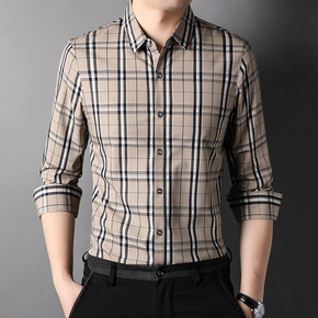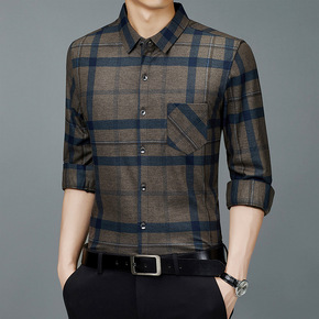 2022春秋新款男士衬衫中青年休闲薄款格子翻领真口...