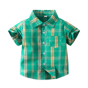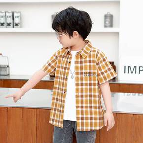 夏季儿童衬衫男童短袖格子休闲百搭格子衬衣宝宝衣服...