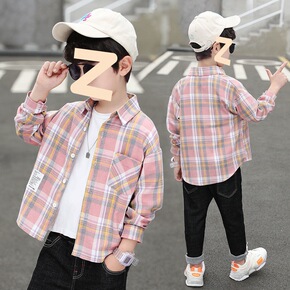 男童格子衬衫2021年新款儿童春秋款中大童洋气长袖...