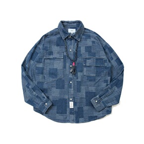 古也男装 日系潮牌2021新款蓝格子衬衫男民族风牛...