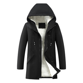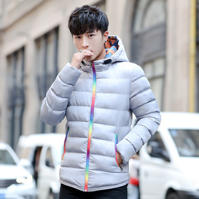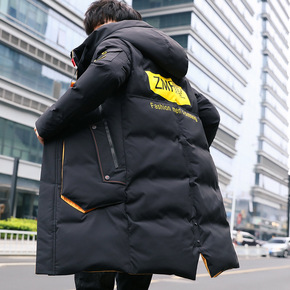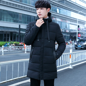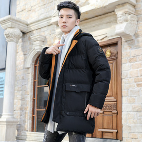 外贸男装长袖连帽冬季中长款拼色加厚棉衣青少年修身男...