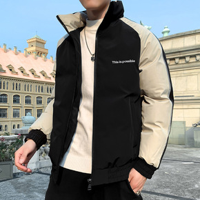 秋冬季新款男休闲潮流棒球领薄棉服宽松上衣时尚帅气中...