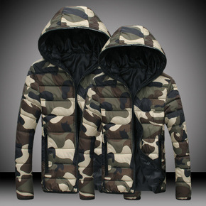 男士连帽迷彩棉衣 2020冬季新款亚马逊外贸情侣大...