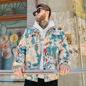 男士秋冬季2021新款个性印花连帽保暖拉链棉服休闲...