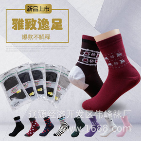 【经典商务男袜】男士棉袜子秋冬中筒袜双针男袜吸汗纯...