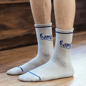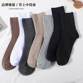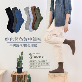 经典男袜HENNYRUE秋冬新品简约抽条基础中筒袜...