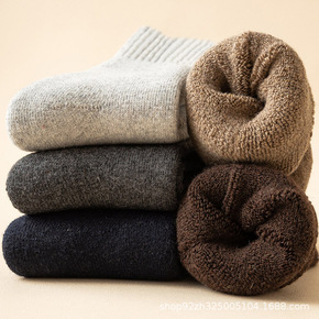 男士纯棉羊毛袜加厚毛绒保暖袜子男中筒袜冬季加绒毛巾...