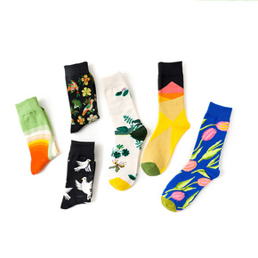 袜子男中统袜ins潮牌秋冬男袜简约笑脸男士长袜街头...