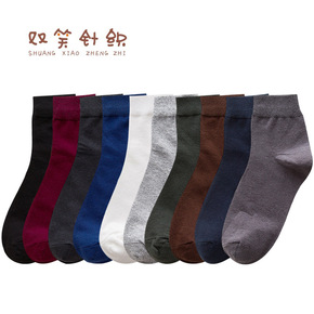 2020新款秋冬季男士短筒袜子 暗纹仿双针纯色男低...