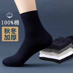 秋冬袜子男纯棉中筒袜加厚保暖棉袜100%全棉男袜纯...