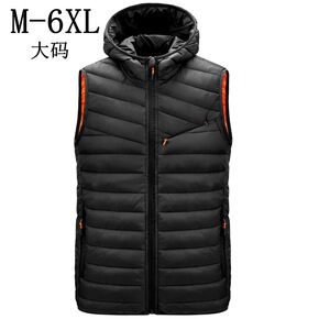 2022秋冬新款男士轻薄羽绒棉马甲跨境大码连帽休闲...