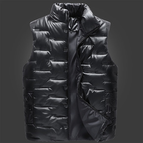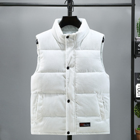 港风大方马甲男士秋冬立领羽绒棉背心外套宽松百搭马夹...