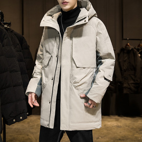 厂家直销男士冬季新款中长款羽绒服潮流白鸭绒加厚保暖...