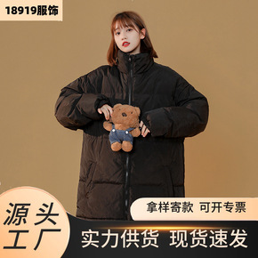 新款流行粉色棉服情侣冬季羽绒棉衣外套设计感小众in...