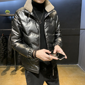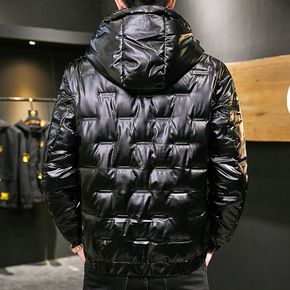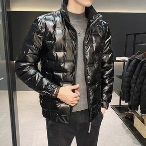 羽绒衣潮牌2021年新款亮面冬季外套男士短款轻薄羽...