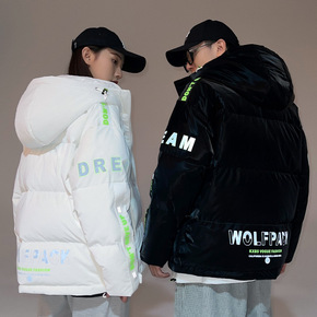 2021冬季新款羽绒服男情侣学生连帽时尚潮流港风宽...