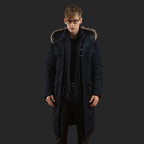 Marton/玛特尔男羽绒服新款貉子毛领过膝加厚双...
