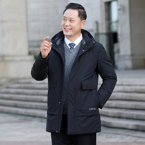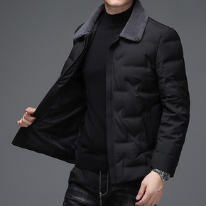 羽绒服男冬季新款翻领外套白鸭绒加肥加大吗中年爸爸反...