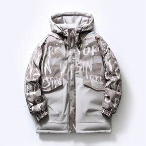 男士羽绒服中长款2021年新款潮连帽冬装外套工装加...