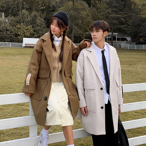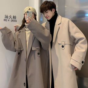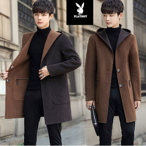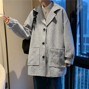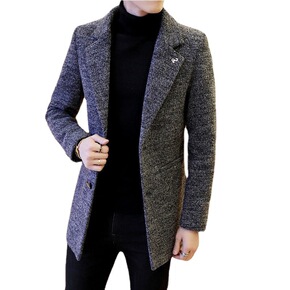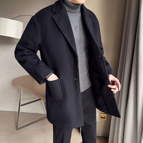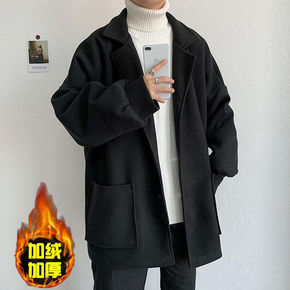 风衣外套潮男春秋冬季西装潮流热卖加绒加厚毛呢子大衣...