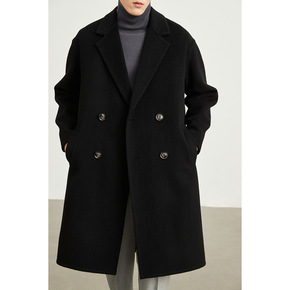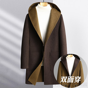 秋冬季新款中年男士双面呢大衣时尚休闲两面穿羊毛中长...