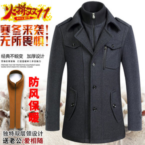 中老年人爸爸秋冬季外套男毛呢子大衣加绒加厚爷爷冬装...