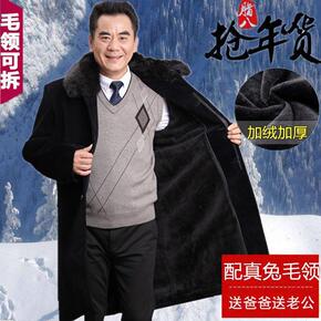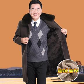 中老年男装大衣爸爸加绒加厚外套爷爷棉衣服秋冬长款毛...