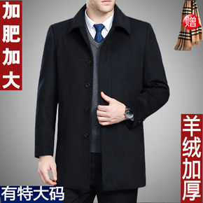 中年爸爸中长款西装领毛呢大衣外套胖子加肥加大码外套...
