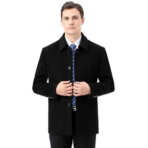 中老年人爸爸秋冬季脱卸外套男中年毛呢大衣爷爷冬装长...