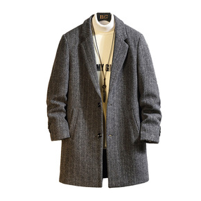 男装羊毛呢大衣中青年男士呢子外套厚秋冬季中长款大码...