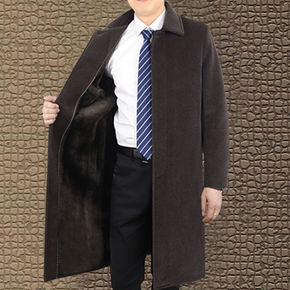 外套爸爸款冬季中老年毛呢大衣男士加长款小腿加绒羊毛...