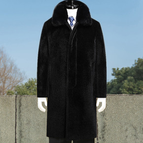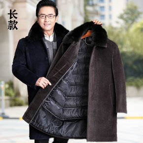 品牌中老年羊毛绒呢子大衣中长款加大码男士羊绒外套冬...