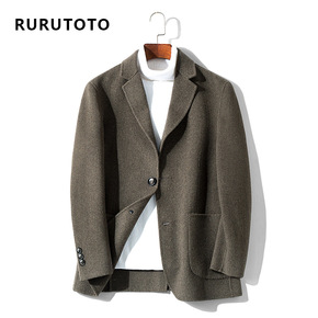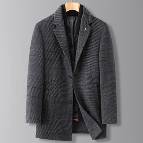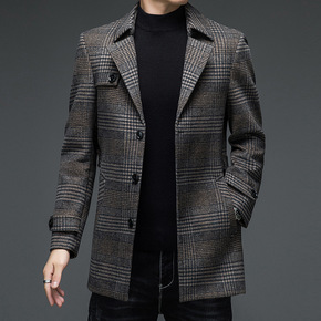 双面尼男式外套2021秋冬新品中青年时尚韩版单排扣...