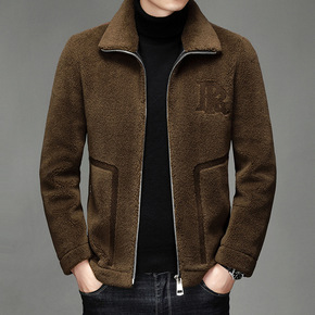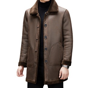 海宁新款皮毛一体男士中长款翻领休闲两面穿纯羊毛羊剪...