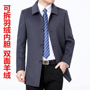 男士双面羊绒呢大衣中长款羽绒内胆中老年加厚翻领羊毛...