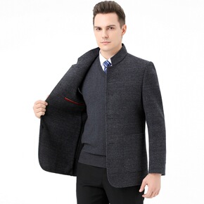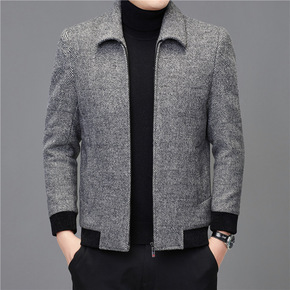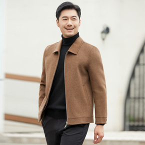 中老年男士羊毛呢子外套商务休闲爸爸装春秋双面呢羊毛...