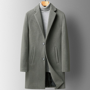 2021冬季新款中老年男式羊绒大衣翻领加厚长款羊毛...