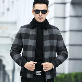 秋冬新款双面呢无羊绒大衣男士加厚脱卸皮草内胆羊毛格...