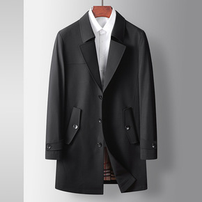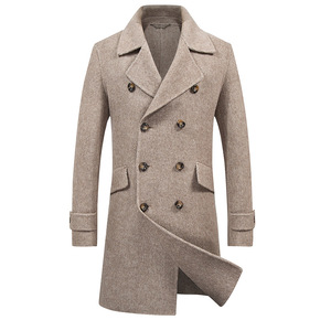 外贸跨境秋冬翻领男士羊毛呢 韩版风衣 中长款男装毛...