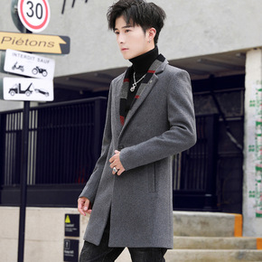 秋冬季男士毛呢大衣中长款韩版潮流帅气风衣加厚妮子呢...