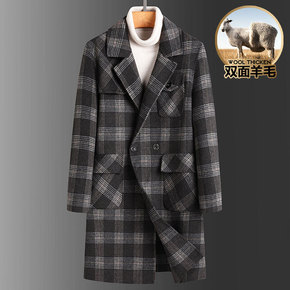 中年男士羊毛格子外套加肥加大双面呢子大衣胖子潮大码...