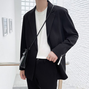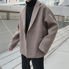 毛呢外套男韩版宽松痞帅休闲西装轻熟秋冬季加绒加厚短...